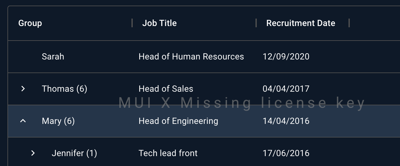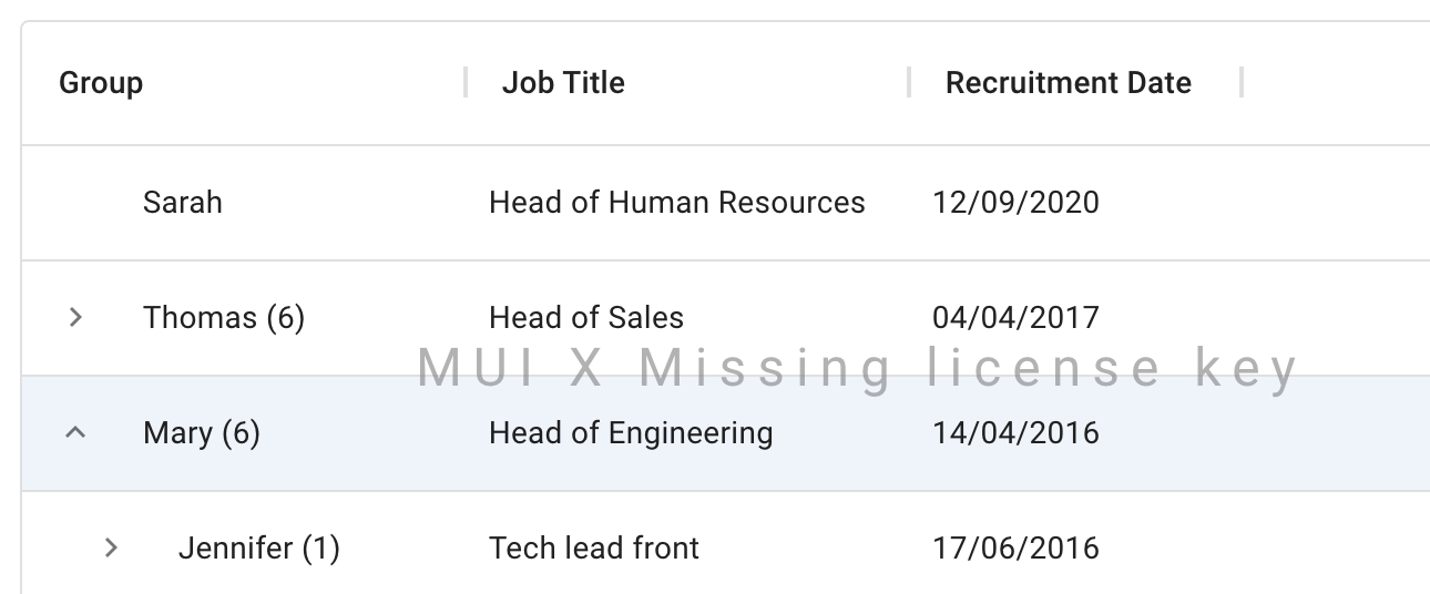MUI X Premium unlocks the most advanced features of the Data Grid, including row grouping and Excel exporting, on top of everything else offered in the Pro plan.